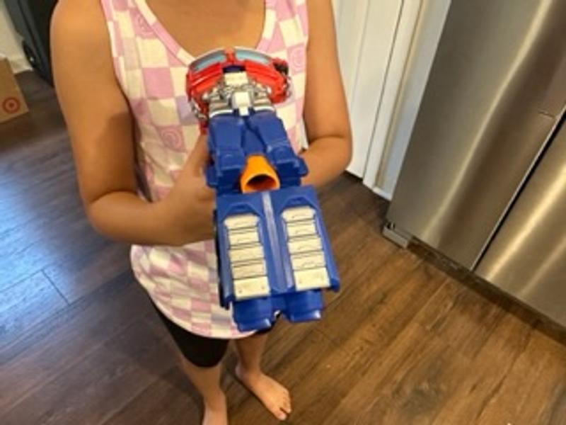 My grandson loves this Transformers: Rise of the Beasts 2 in 1 Optimus Prime blaster. He plays with it all the time and he loves the transformer characters. I cant wait to buy him more of these so his friends can play with him as well. The kids are having a blast with it outdoors.