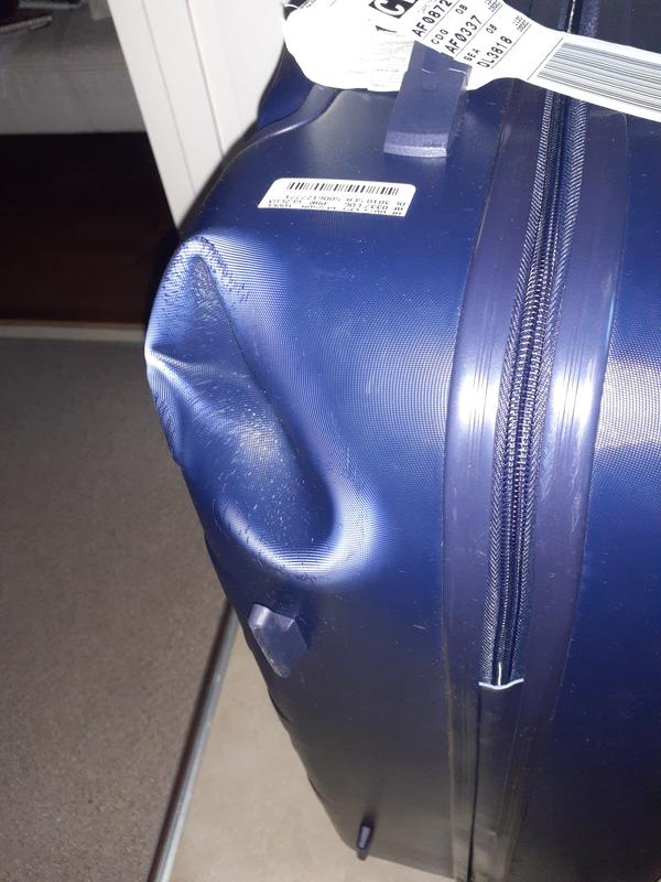 Traveled with the case on Tuesday and it dented badly in two corners. Material too soft (not at all "hardside") and the zipper of poor quality.