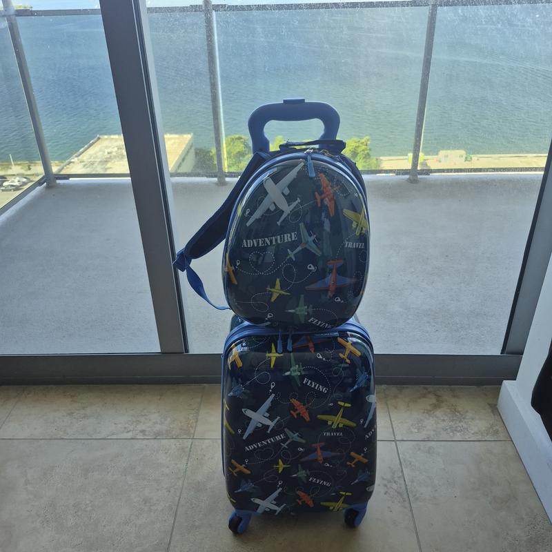 Beautiful sturdy pieces grandson loved it. Perfect to carry toys, snacks and even a few pieces of clothing. Makes children feel included in the travel experience