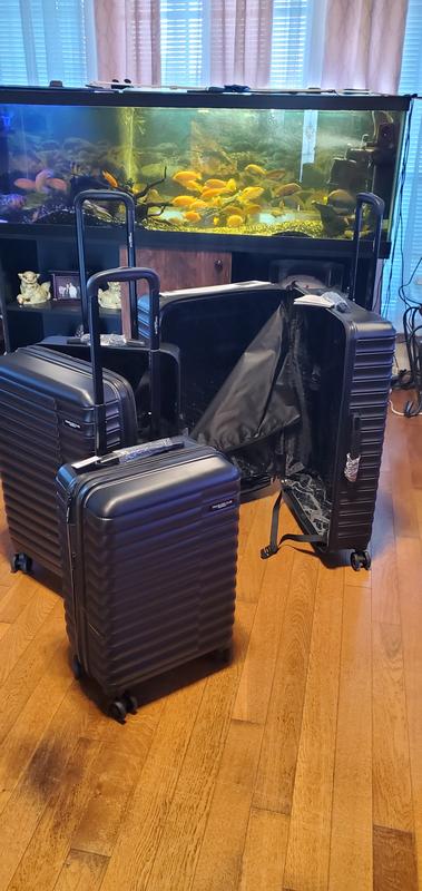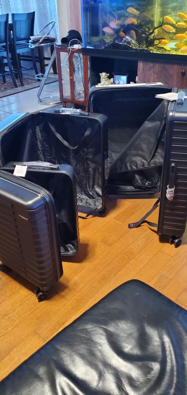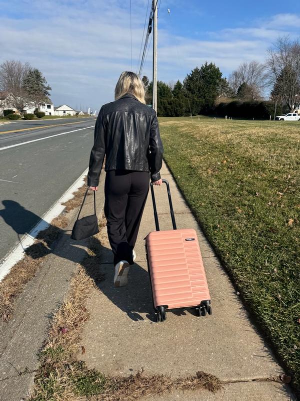 Absolutely love this set! The color is so fun and peachy. I actually just had my luggage broken so this came at the right time. The carry-on bag was perfect for a weekend trip, it fit two pairs of boots all my clothes and toiletries. I really also love that this set fits into each other. I often travel with one checked bag on the way out and buy so much stuff that I need a second bag so it would be perfect for those travel situations. The luggage was light, but also felt durable. I tossed around a bit on the sidewalk and it rolled smoothly. Really made me look at their products more positively and can’t wait to keep using this luggage set!
