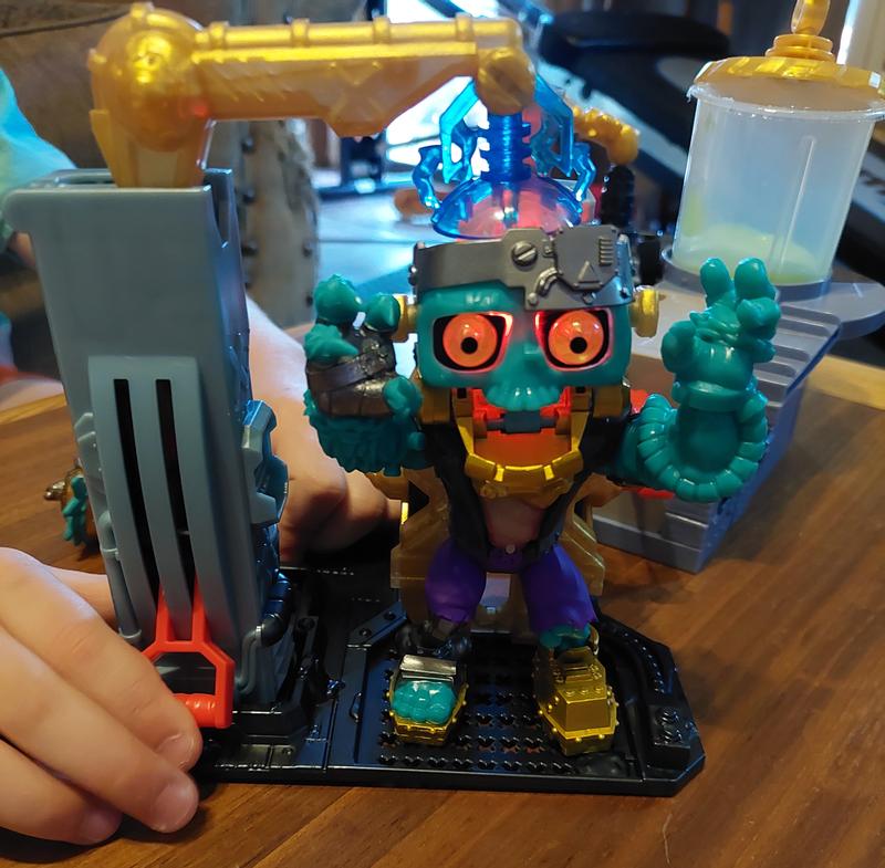 My son loved creating the lab and building his own monster. The body parts are in ooze which my son thought was the best! The monsters eyes and brains light up. He loved that he found real gold treasure and shows all his friends his gold. After creating his monster the first time, he still sets up the lab and has the scientist do experiments on the monster. There is a lot of creative imaginative play that goes along with this set.