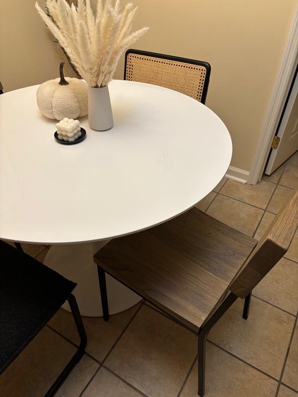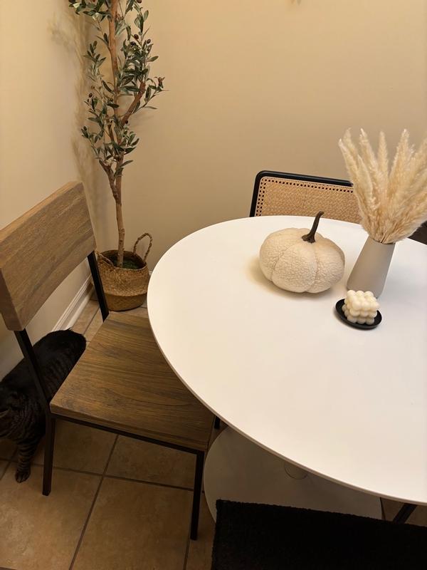 these chairs are cute and neutral, goes with most furniture. i already had 2 chairs and i think the mix match is very cute. they aren’t too big, good for smaller tables and apartments. not hard to assemble, either. they aren’t the most comfortable in my opinion.