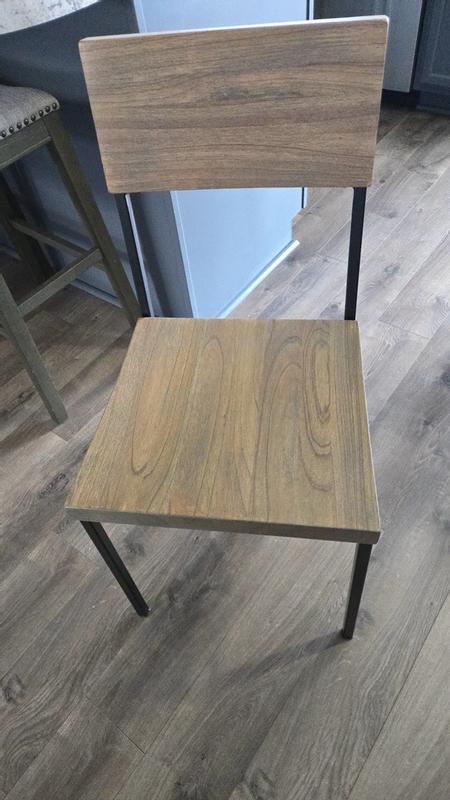 Exactly as described and picture. Excellent addition to my breakfast nook!!! Great grains in the wood well matched against the metal legs.
