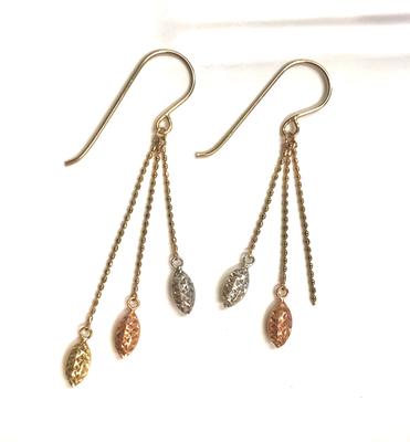 Tri-Color Beaded Chain Drop Earrings in 10k Gold, White Gold & Rose Gold