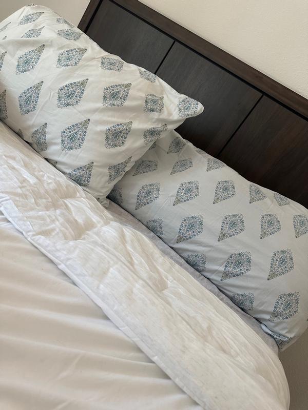 Comfortable, breathable pillowcases in a lovely floral print. Washed well without too many wrinkles and was durable. Has a nice cover pocket for the open end so your pillow stays in place.
