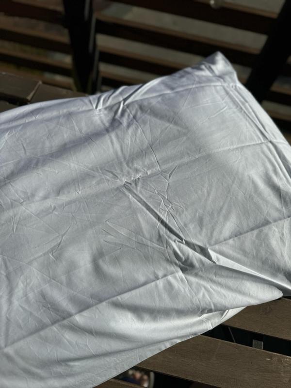 The king-size pillowcase looks nice and feels soft and smooth to the touch. However, there was a slight smell when I first opened it. Due to the material, it wrinkles easily, which can be a bit annoying. Also, it doesn't have a zipper, which I personally don’t prefer.