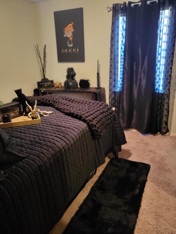 Just as pictured. I bought the black and it’s a rich shade. It has not been washed so unsure if this will change. Even though it’s velvety the back is not which allows the comforter to not be too heavy.