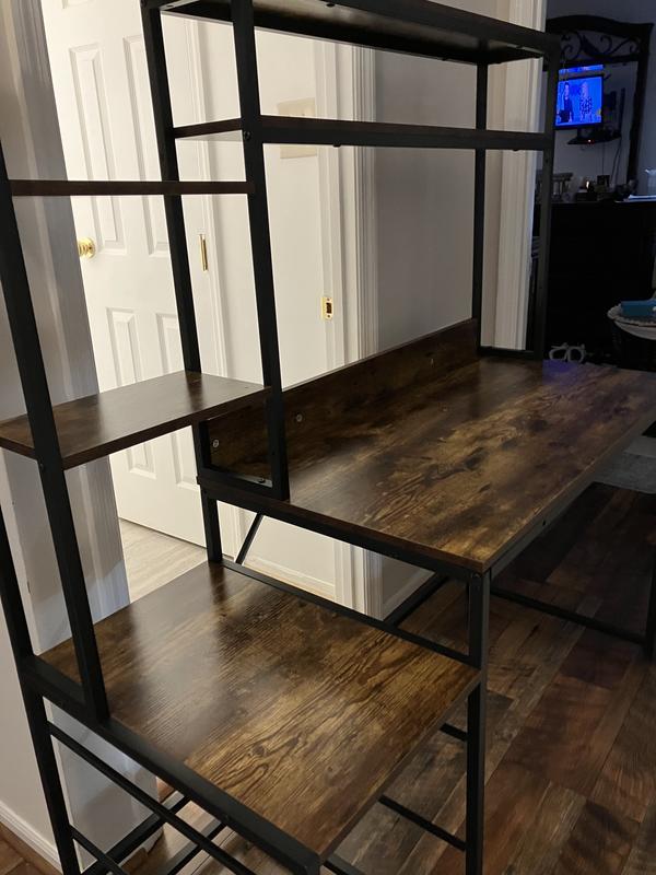 55 Inch Computer Desk with 2 Drawers and Storage Shelves, Rustic Office Desk with Hutch, Study Writing Gaming Table Laptop Workstation