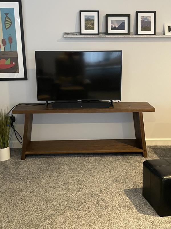 Web ID: 25819349Bring natural warmth and versatile function to your home with the Tribesigns Solid Wood TV Stand. Designed with a practical two-tier layout, this 63-inch console safely accommodates televisions up to 65 inches, while the open lower shelf offers ample storage space for media players, game systems, books, or decorative accents, keeping your living room or bedroom organized and clutter-free.