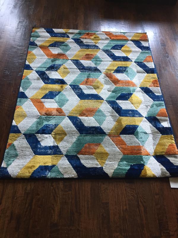 I got this rug for my teen boys’ room. The colors and shapes are super cool and vibrant. They just love it! This is a quality rug that lays nice. It has nice edges that haven’t curled and lay flat. It has a nice thickness to it as well.