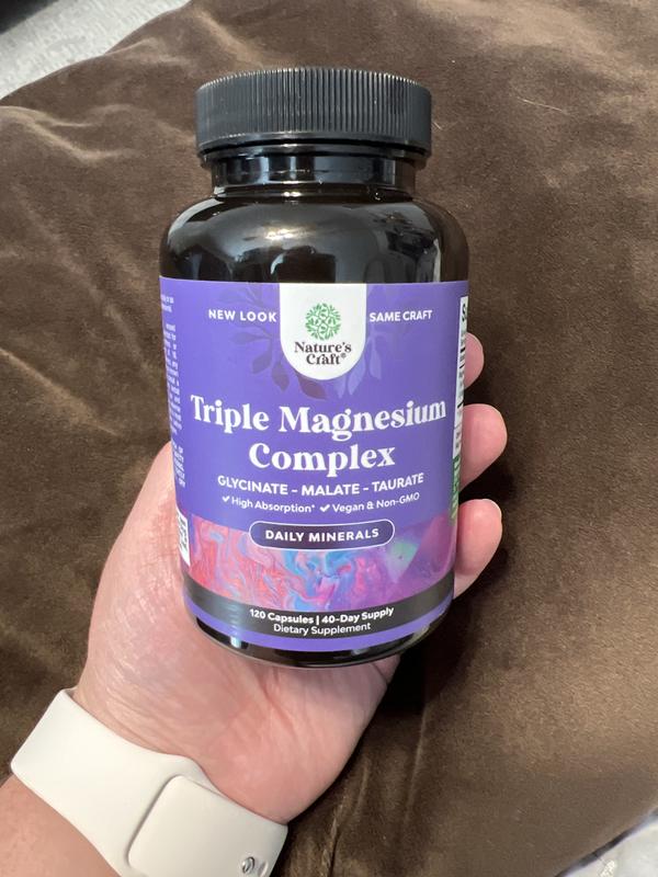 Triple Magnesium Complex | High Absorption Magnesium Taurate & Glycinate Malate Magnesium Blend for Overall Health | 180ct