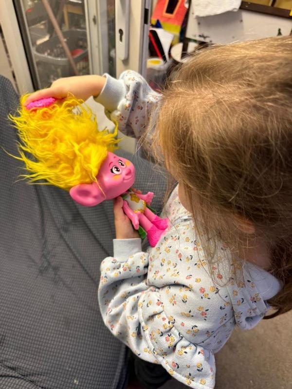 This is such an amazing little Troll Doll. The hair is full and it comes with a little brush 😍 The doll even signs. I mean, what more could a little kid ask for?! Beautiful and bright and so engaging!