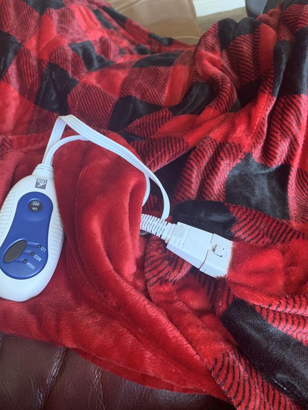 I love this heated blanket and the red and black flannel print pattern. Its so soft. It has 3 heat settings and a 2 hour auto shut off. Its great for taking naps on these cold fall days. Im 5'9 and it just barley covers me but I love it and would recommend it.
