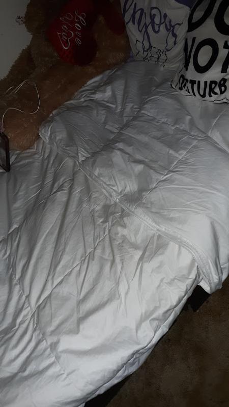 I got this comforter a few weeks ago and been using it. I'm so glad I decided to pick this up. It's so comfy and warm. Took it out the bag it came in threw it in the dryer to get it fluffed out and on the bed it went. I'll definitely be buying more of these, I'm hoping they come in now colors then just white. I definitely recommend these if your thinking of getting one.