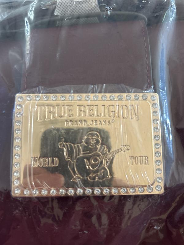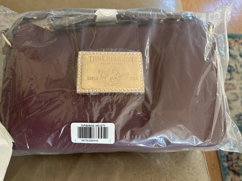 - -Interior: Backwall zip Pocket, Front wall slip pocket -Exterior: Belt buckle-style tab with gold-tone True Religion logo plaque