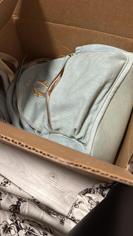 Web ID: 23123797Elevate your everyday essentials with the True Religion Zip Pocket Denim Horseshoe Backpack, a stylish fusion of functionality and signature branding. Designed with a premium denim finish, this backpack features the iconic gold-tone Horseshoe logo and True Religion branding for a bold yet sophisticated look. The spacious main compartment includes an internal zip pocket for organization, while the multiple external zip pockets provide convenient access to essentials. Padded, adjustable shoulder straps ensure all-day comfort, and the signature-stitched interior lining adds an extra touch of luxury. Perfect for those who appreciate classic denim style with modern versatility. -This True Religion bag is officially licensed. You are ensured to receive genuine and authentic merchandise. -Material 50% polyester 50% Cotton -Dimension: 16H X 12.5W X 7D -Weight 2 lbs. -Imported