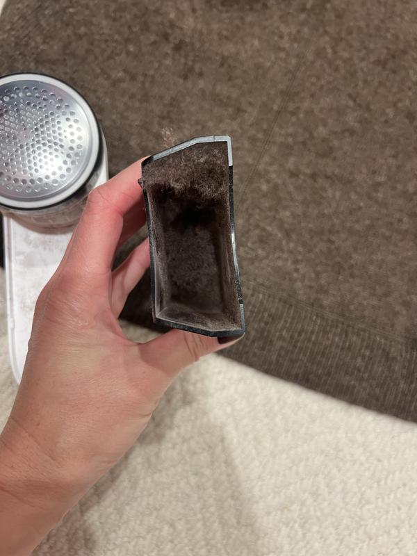 Powerful little fabric shaver! Did a very pulled sweater and got it looking and feeling like new. Also did the couch and that really freshened it up as well! Very easy to handle and grip.
