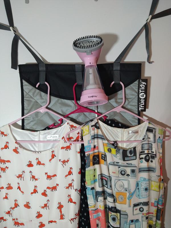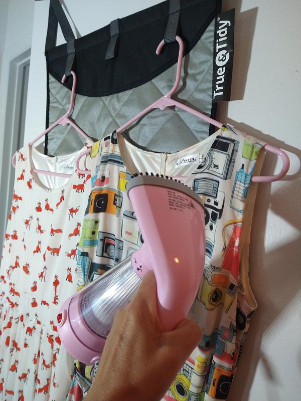 This steaming pad is awesome! Before, I would just either hold up my garment and steam them trying to avoid burning myself or just hang them on a doorknob but this pad is the best. It fits simply over the closet door or any door and has a place for a hanger and you’re good to go! So easy and simple. Where has this been for so long? True & Tidy!!