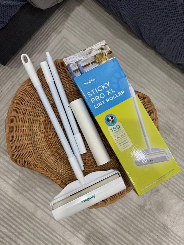 I’m really impressed with the True & Tidy StickyPro XL Lint Roller. The roller is extra wide, which makes cleaning up pet hair, lint, and dust super fast and efficient especially on furniture and large surfaces. The adhesive sheets are really sticky and pick up everything in one swipe without needing to go over the same spot multiple times.