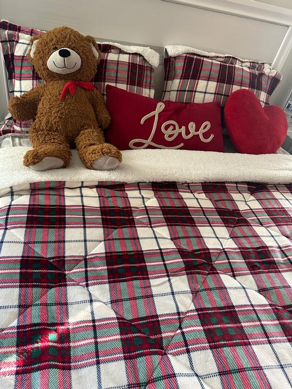 The Truly Soft Cuddle Warmth Marlon Plaid Full/Queen Comforter Set is a cozy and stylish bedding choice that combines comfort, warmth, and durability. Made from 100% polyester with a super-soft microfiber and velvet-like texture, it offers a plush feel that’s perfect for colder nights. Its reversible design features a classic plaid pattern on one side and a warm sherpa-style fleece on the other, adding both function and flair. It is incredibly soft, machine washable, and maintains its fluff after cleaning. The set includes a generously sized comforter and two matching pillow shams, fitting perfectly on full or queen beds. Overall, it’s a high-quality, cozy comforter set that brings warmth, softness, and a touch of classic charm to any bedroom.