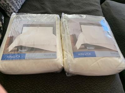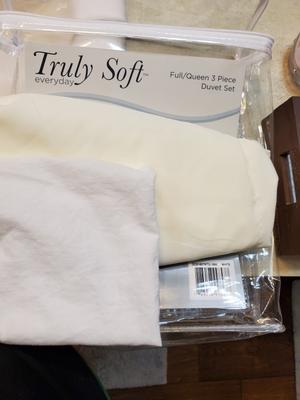 I am very pleased with the duvet cover and pillowcase covers, it is the perfect color and size just as advertised. It arrived after only three days.