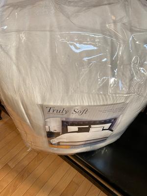 This comforter was nice enough though not the wow factor I was hoping for. The stitching on the comforter itself had the black stitching coming thru..not sure if thats the look it was supposed to be but not for me. It had a decent fullness to it and overall would be nice if you want the black and white decor and dont want to spend a ton getting the look.