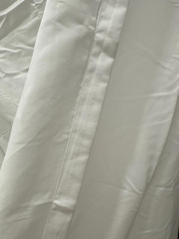 These curtains look fantastic! The white is a true white, not off color at all. The material is very soft to the touch and just sheer enough to be able to see shapes behind it, but thin enough to let plenty of light in the room. The fabric is double layered, as pictured. It also comes with two ties, which can be completely removed if you don't wish to use them. The ties are easy to clasp, with just a simple button. Overall, very pleased with these curtains. They would make a great addition to any room?
