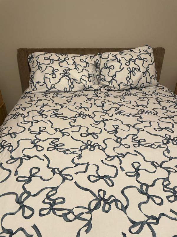 The Truly Soft 3 Piece Full/Queen Comforter Set is a charming addition. This comforter set is incredibly soft. The material feels luxurious. I washed it a few times to test, and the comforter retains its shape and color well, showing no signs of wear and tear. The fabric is sturdy and lightweight. It dries quickly and does not require special care, making it practical for everyday use. The printed bow in white and blue design offers a fresh, contemporary look. The soft color palette adds a calming effect, ideal for creating a serene sleeping environment. The Truly Soft comforter set offers excellent value. It adds a stylish touch to the bedroom without breaking the bank.
