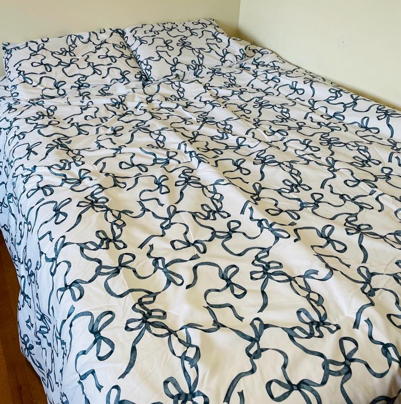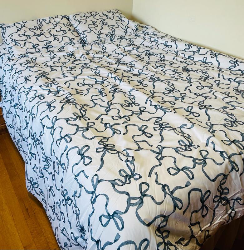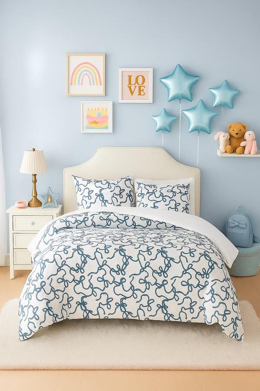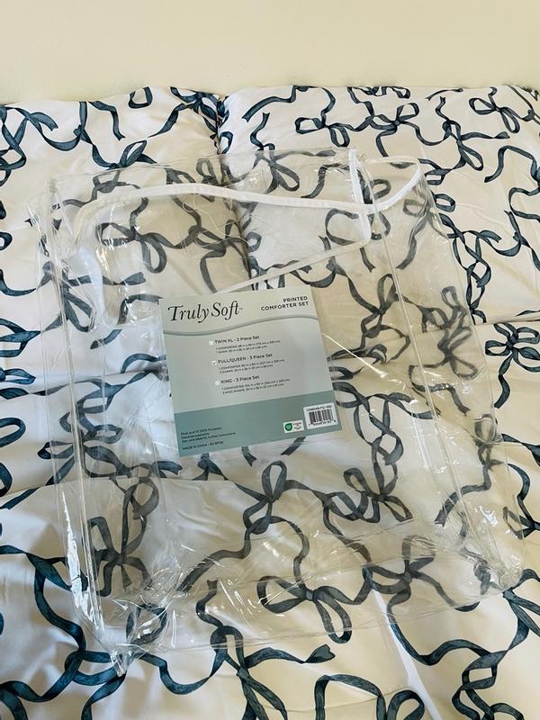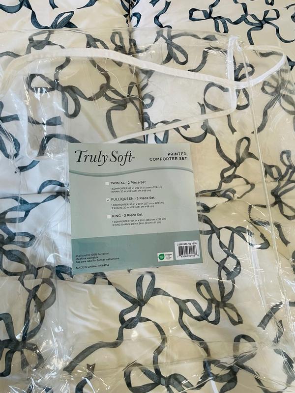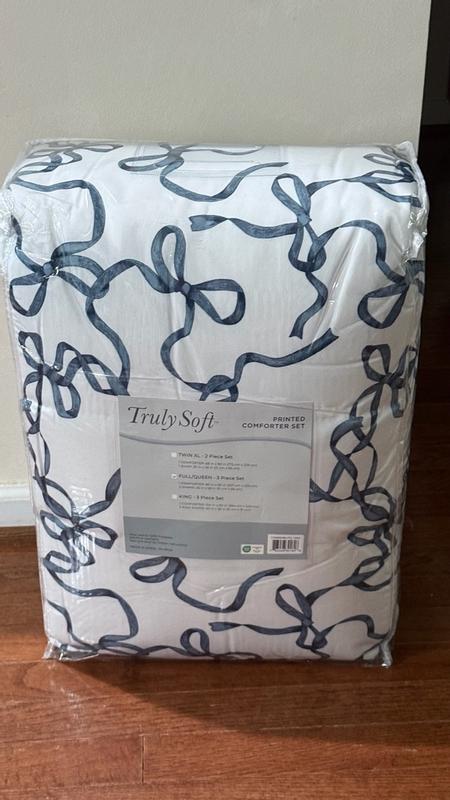 The Truly Soft 3 Piece Full/Queen Comforter Set is a charming addition. This comforter set is incredibly soft. The material feels luxurious. I washed it a few times to test, and the comforter retains its shape and color well, showing no signs of wear and tear. The fabric is sturdy and lightweight. It dries quickly and does not require special care, making it practical for everyday use. The printed bow in white and blue design offers a fresh, contemporary look. The soft color palette adds a calming effect, ideal for creating a serene sleeping environment. The Truly Soft comforter set offers excellent value. It adds a stylish touch to the bedroom without breaking the bank.