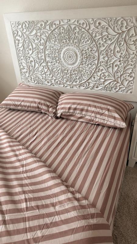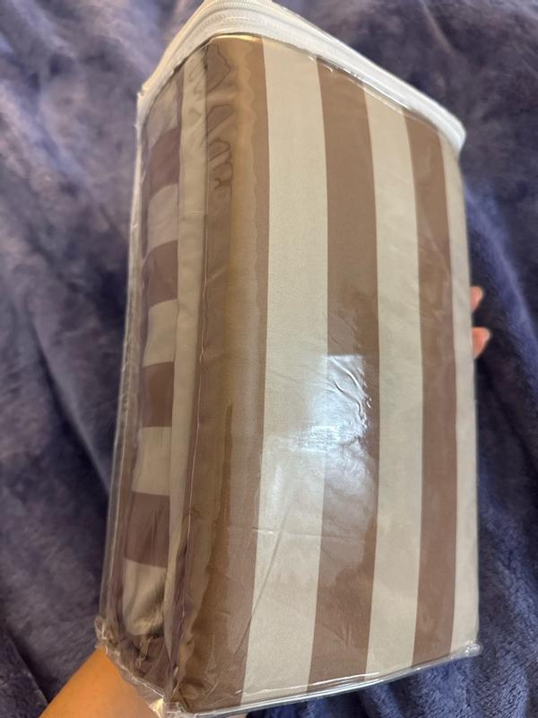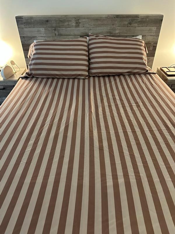 I’m really impressed with this sheet set! The fabric feels super soft and lightweight, making it comfortable to sleep on even in warm weather. The brown stripe design is classic yet stylish, and it easily matches with my existing bedding. I love how the sheets wash well without losing softness or color, and the fitted sheet stays snug on my mattress without slipping off. It’s also wrinkle-resistant, which makes the bed look neat without much effort. Overall, this set delivers on comfort, style, and durability—I’d definitely recommend it if you’re looking for quality sheets at a great value!
