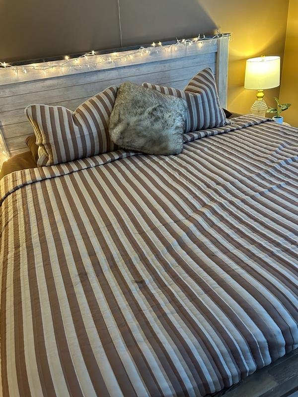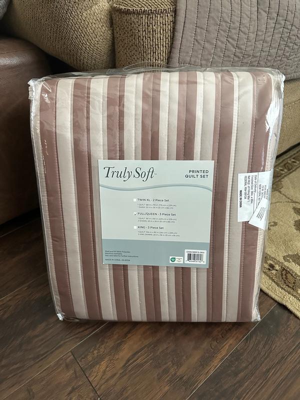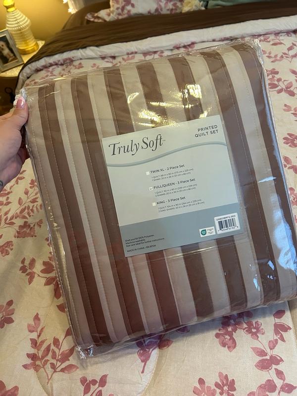 I really like this Truly Soft classic strip quilt. The neutral colors can go with anything. The fabric is microfiber and soft. It fit my bed perfect and the best part is it’s machine washable!
