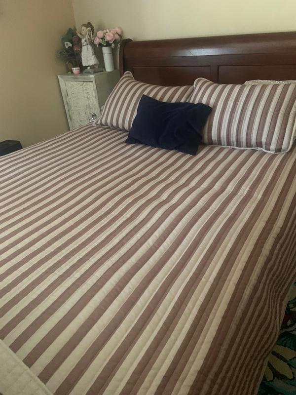 This quilt is made so well, I love the lightness of the quilt as well as the material. It’s made very durable and compliments my bedroom. I love the stripe design and the colors are much more bold than appear. It is Truly Soft