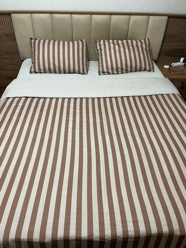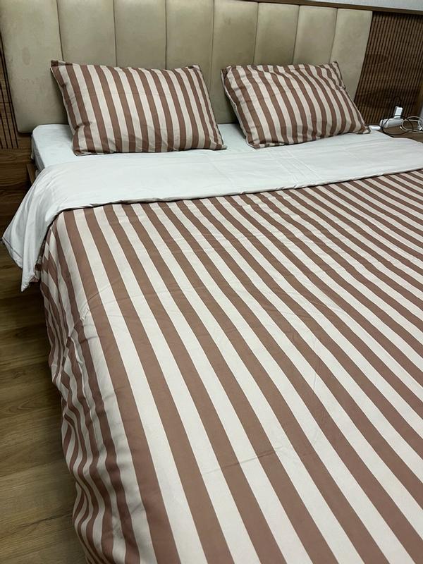 This bedding set is very simple, elegant and beautiful for me. It fits my bedroom perfectly and I am very happy with it. Its quality is perfect, I feel like I am flying in the clouds when I sleep. It is a very durable material, which ensures its quality.so its very comfort to me