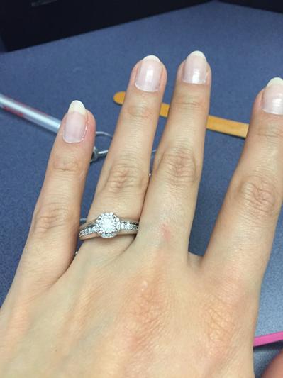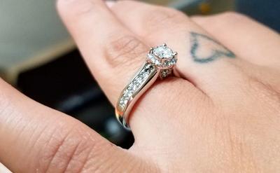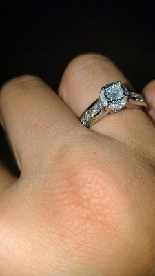 I didn't knew where my husband bought my engagement ring and I found it today here; I just need to tell you that this ring it's amazing and looks awesome, I lost count of how many complements have I ever received since we got engaged. It is absolutely amazing!!! Must buy it guys trust my advise; I am very picky and my husband finally surprised me with something that I couldn't pick on LOL it is very good quality and size too, it does look impressive and very bright! I love it!!!