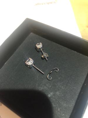 I received these as a gift. I already had diamond stud earrings, but while I was at the Macy’s store, I saw some flat diamond earrings that I thought would be more comfortable. Later, my boyfriend went into Macy’s and the sales person talked him into buying these instead. Both the earrings that I saw in the store and these are terrible junk diamonds rated I3. They are not jewelry grade stones. They may even crack. Most reputable jewelers will not sell an I3 diamond. I would not even pay this price for an I1 diamond. They are also in an illusion setting, which makes them look bigger - there is silver metal around the stone. The metal is what’s sparking! The stones are also very gray and look terrible next to my pearl earrings. You definitely be better off buying cubic Zonia, especially for the price and I usually love Macy’s and I have bought a lot of jewelry at Macy’s, including a diamond pennant that was a good value and is beautiful.