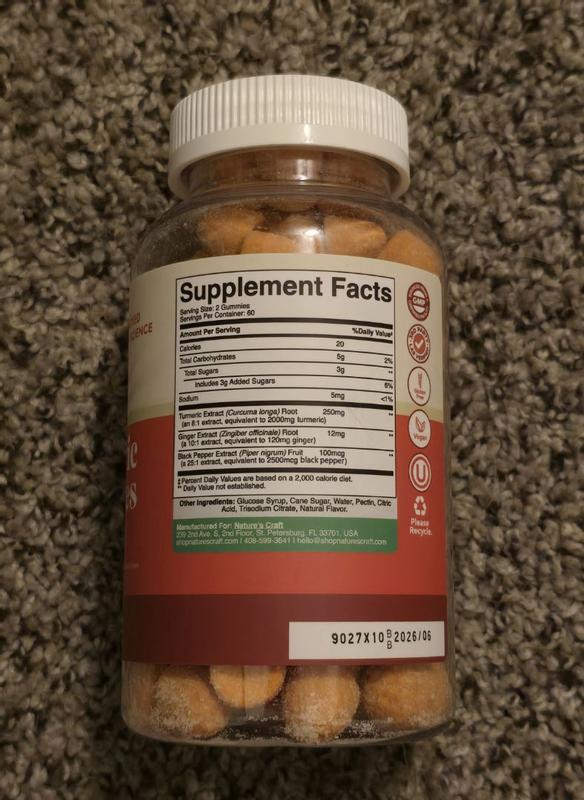 Thank you for your feedback! We’re so glad to hear that you're enjoying the taste of our Turmeric Gummies, with that perfect balance of sweetness and spice. It’s great to know they’re a good fit for your turmeric routine, and we appreciate your recommendation! Thanks for choosing Nature’s Craft!