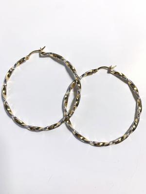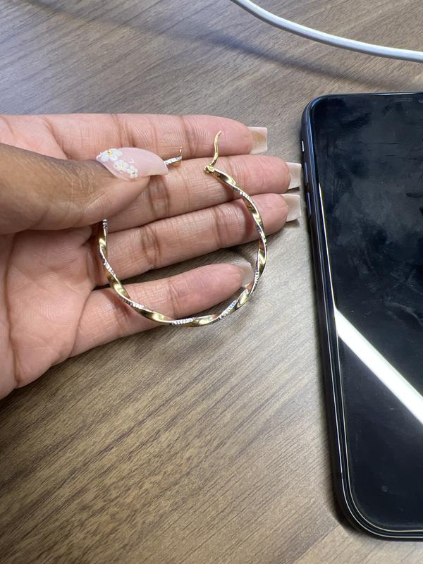 Two-Tone Twisted Hoop Earrings (45mm) in 14k Yellow and White Gold- Plated Sterling Silver (Also in Sterling Silver)