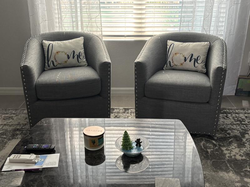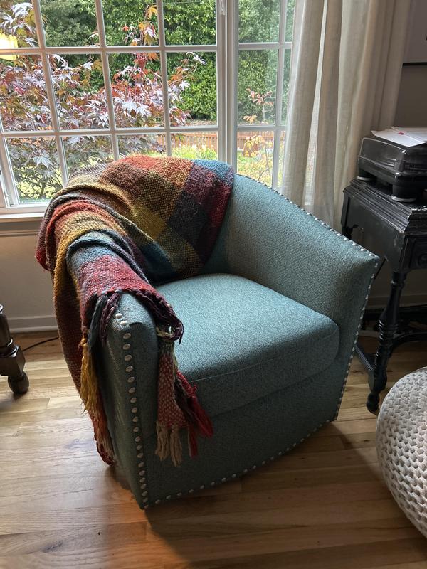 Love this chair. Looks perfect and matches well with other pieces from Ashley’s. Great swivel chair.
