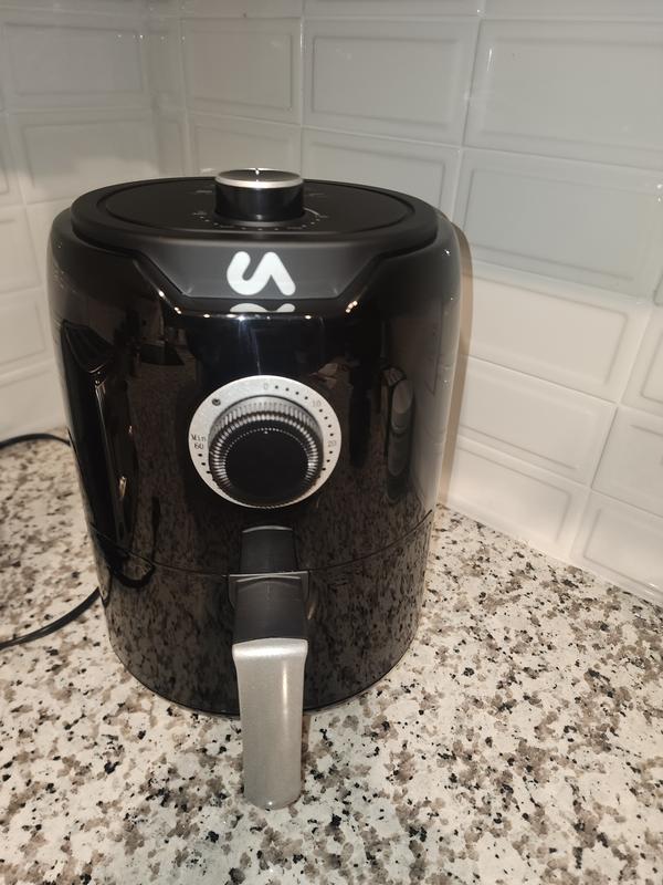 So far, the air fryer works great, but the basket is pretty small so sometimes it takes things longer to cook since you're not supposed to layer the foods. A little disappointing that they force you to leave a review in order to register your product.