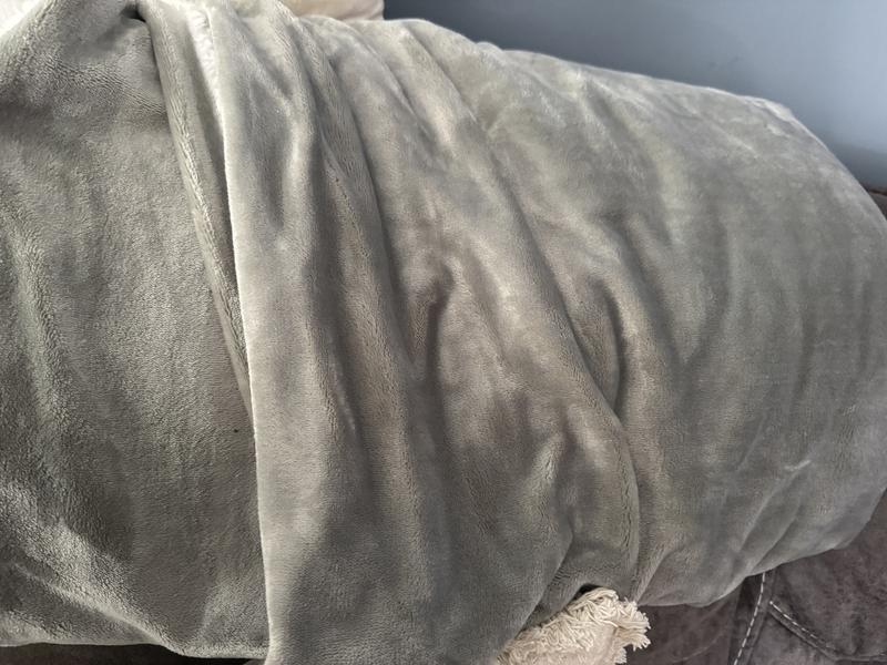 This blanket is so soft and luxurious, and it feels so nice next to your skin. The blanket is lightweight yet very warm. The color is also very nice in a light grey color, goes with everything in my room. Even my dogs like to lay on this blanket. There's nothing like cuddling up with a warm blanket on the couch to watch a good movie. This is that blanket! I have many blankets, but this one is my favorite by far.
