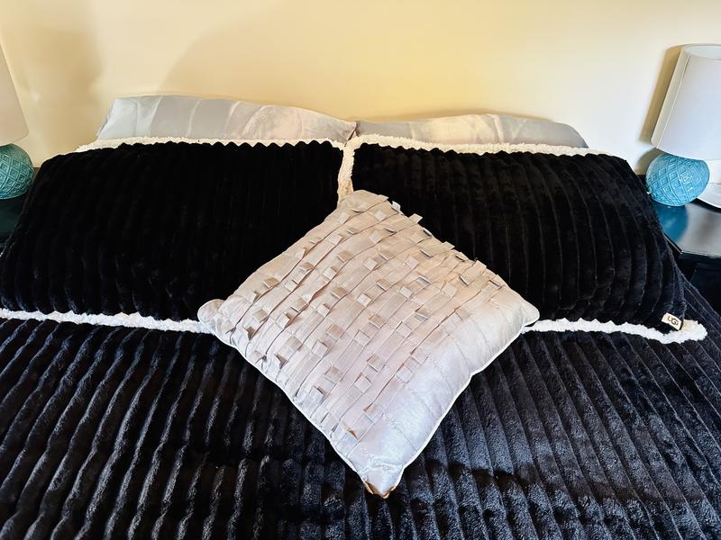 My package was ripped!!! As soon as i opened it, you can tell it has been exposed out in the open.wet, and not in the plastic, for Macys… this is very low and highly unexpected. I don’t even want to put my Ugg on my bed!!! WILL BE RETURNING.