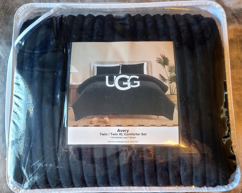 Reversible, plush, down alternative comforter with soft, fluffy, warm shams. Includes the UGG logo faux leather label. I love this luxury plush comforter set crafted with a box stitch to provide even distribution of down alternative fill for luxurious sleeping experience. Heavy feel—perfect for winter and chilly nights Perfect balance of cozy insulation and airflow with this heavyweight comforter, thoughtfully crafted for year-round use.