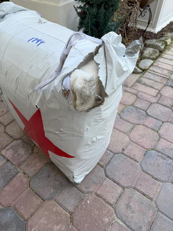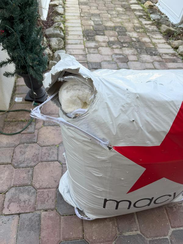 Showed up at my door with greasy oil on the exposed comforter. Wripped package on every corner. Not sure if it is Macy's or delivery's fault. It better be able to be returned!
