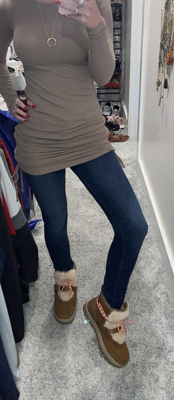 These boots are stylish and true to size; when you slide your feet inside in the boots they feel like a warm oven. I absolutely love the design, you have an option to where them without socks or thin socks. Also, they’re a little heavier than the average Ugg boots.