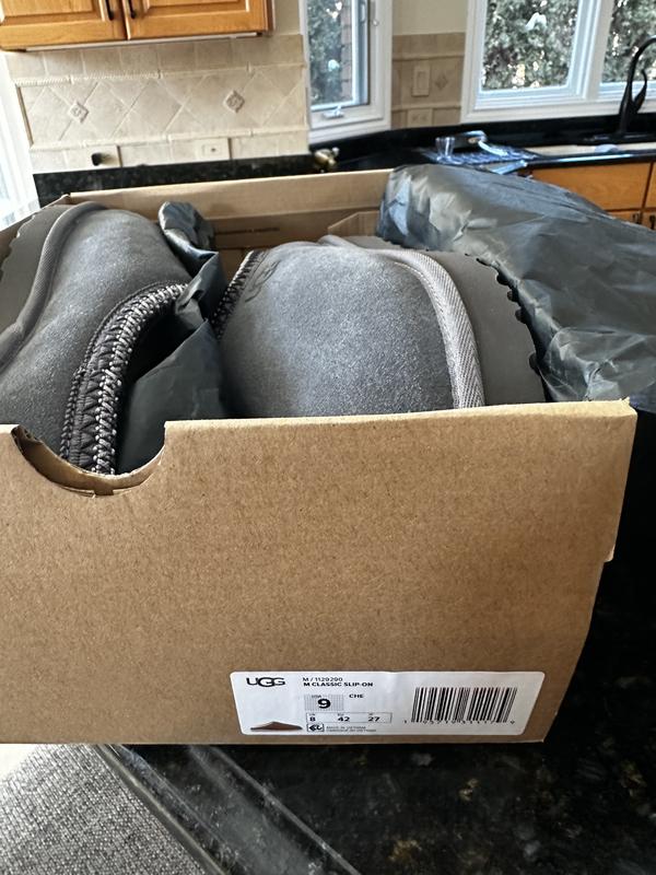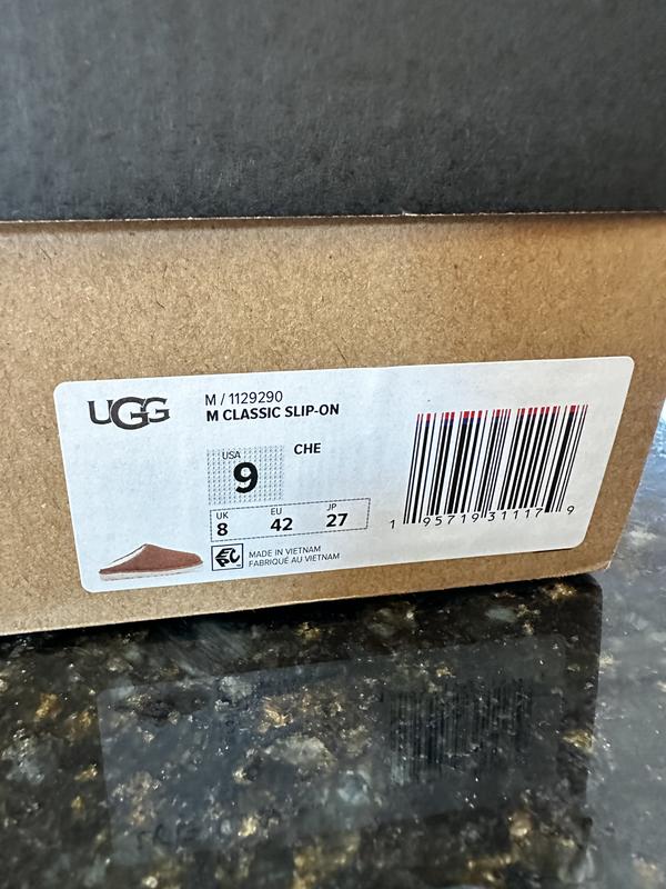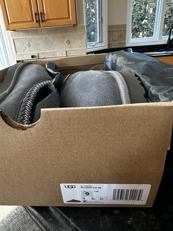 I bought a size 9 chestnut Ugg men’s slipper and received a size 13 black Ugg slipper in the mail. The box had the correct shoe color and size. Inside the box it did not match.