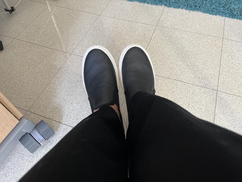 I absolutely love this shoe. I have purchased 3 pair (2) white and (1) black over the last 2 years. They are so comfortable and easy to slip on to run errands or after a long day in heels.