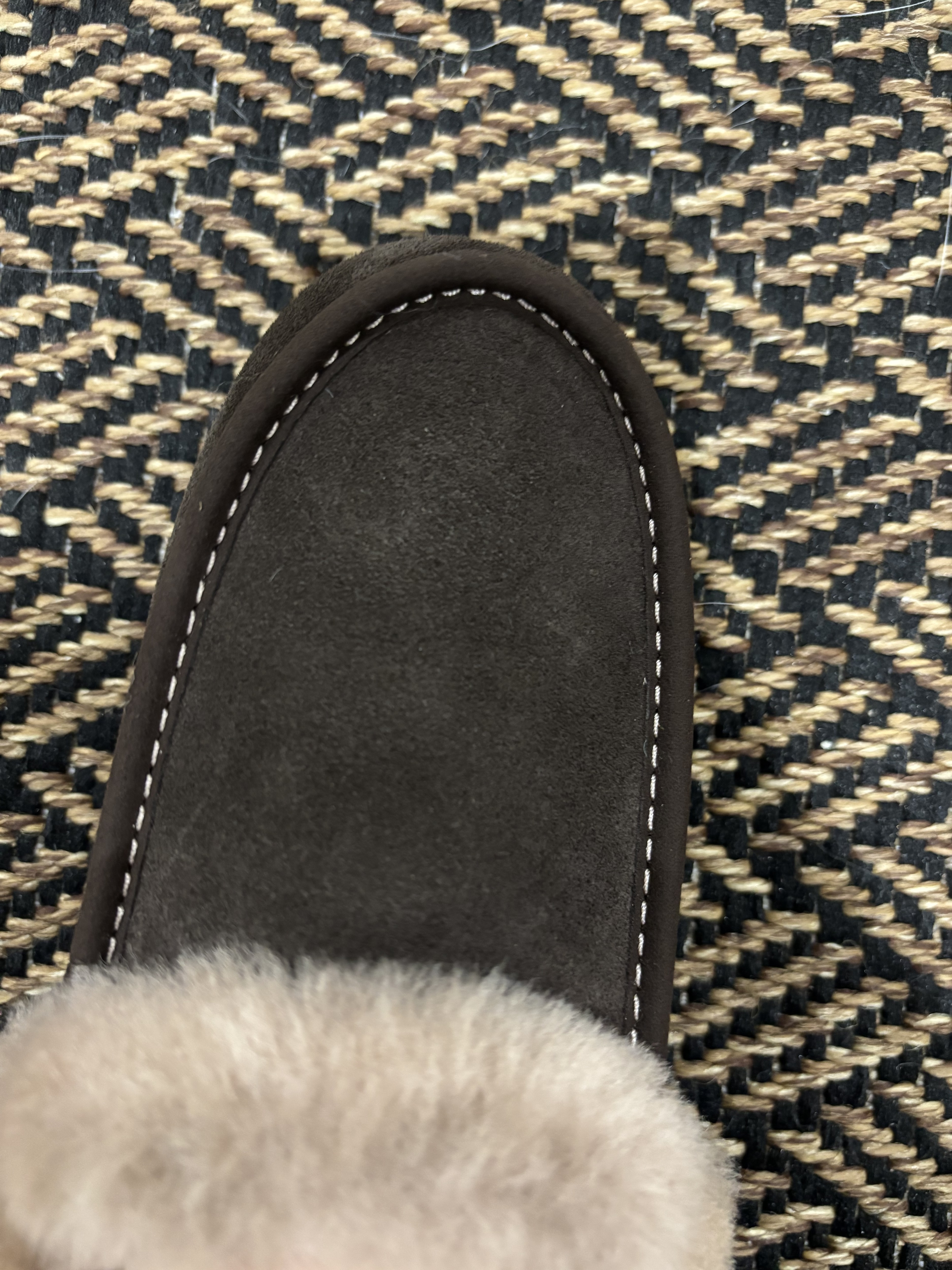 I wish these slippers came in half-sizes. I usually wear a 9.5 so I ordered a size 10 but it was too big. I had to exchange it for a 9 which is snug if I want to wear it with socks. I like the look and feel but wish the sizing was better.