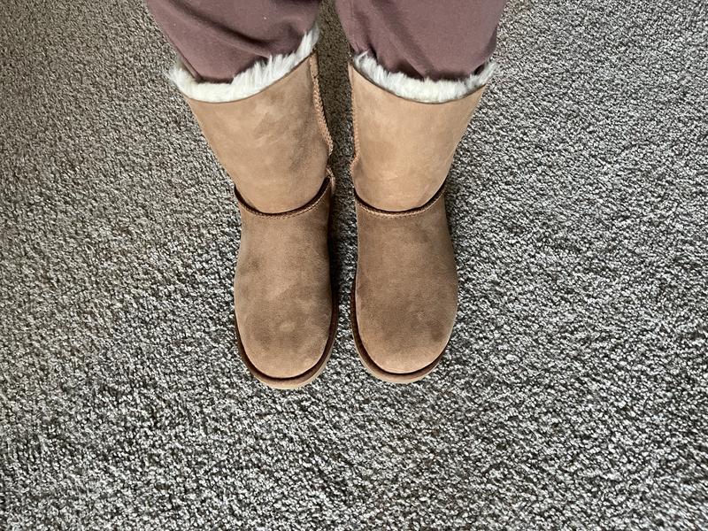 Got these Uggs for my birthday and was so excited to get them. These boots are good quality! Interior sheepskin is nice and thick, keeps your feet cozy. Love the bows! Definitely adds so much cuteness to any outfit. Sizing is correct.