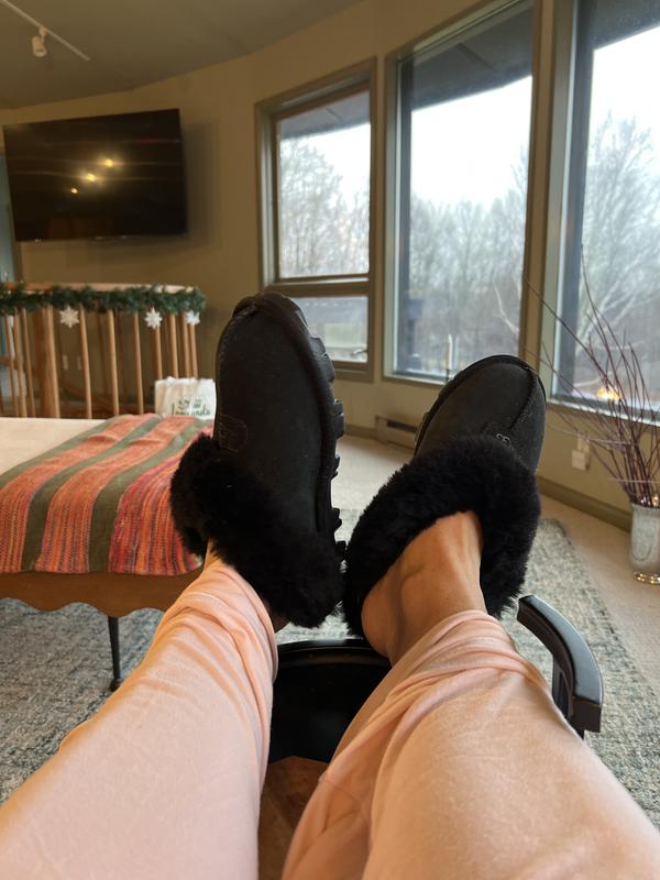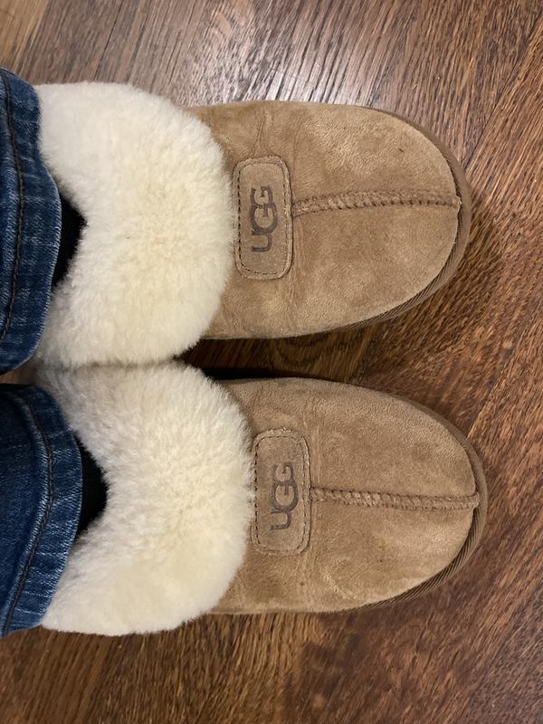 This is my third pair of these. I love them, but every few years I replace because the shearling wears away. Warm, easy to get on and off, and unbelievably comfortable (great cushioning in the soles, soft shearling, great fit). I size down in these compared to other Uggs and wear a 6 instead of my typical 7.