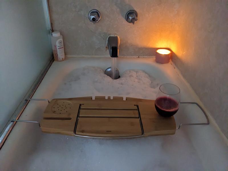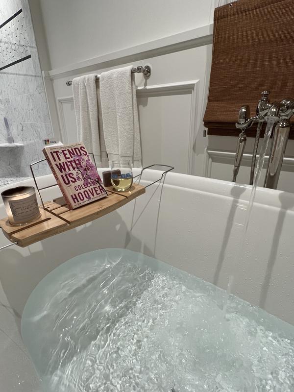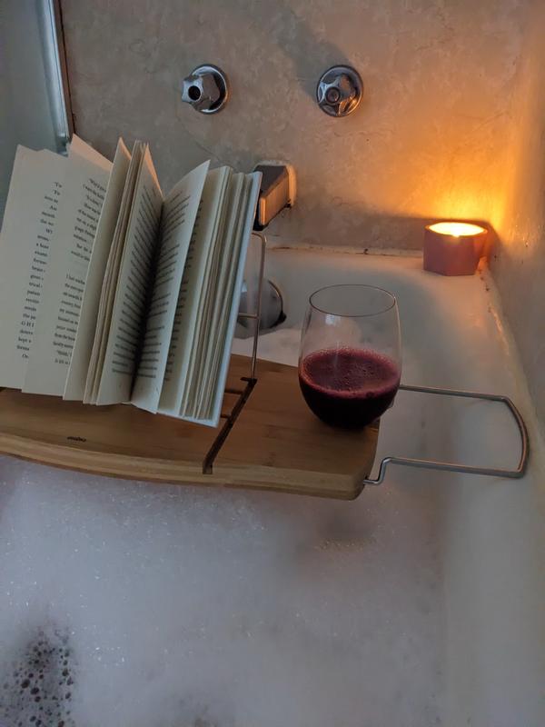 This is such a well made bath caddy and tray!! It has a space for every necessity you can think of (hello wine + phone holder, book holder and more)! It’s also so minimal and beautiful and makes it the perfect caddy to help me unwind at the end of the day! I love that the sides are adjustable no matter the width of the tub and it’s super sturdy! Would recommend, and this would also make a perfect gift!!
